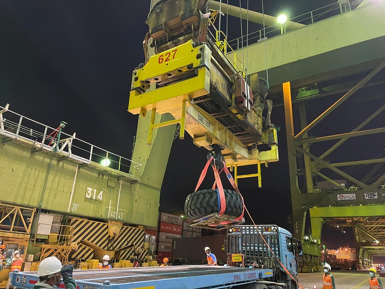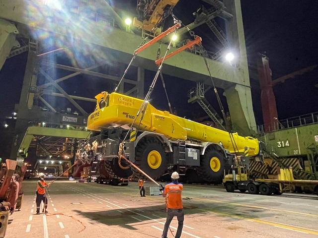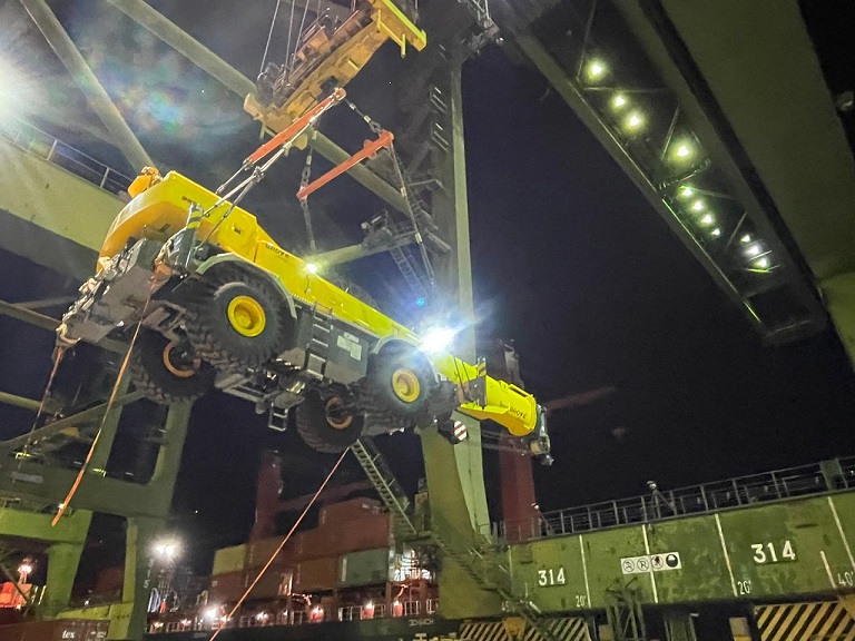 Grove GRT8100 2021 – 100 tonne all terrain mobile crane / 58000kgs / 200m3. Ex/ works Italy to Singapore on roro vessel connecting to MPP geared vessel Singapore to Lae.